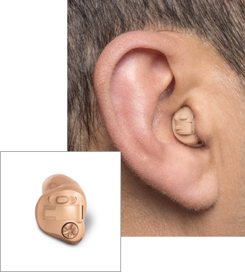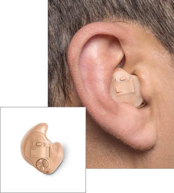 This hearing aid is placed in the ear canal and is the smallest available. It takes advantage of the ear’s natural ability to collect sound, and its discreet size makes the device virtually invisible to others.